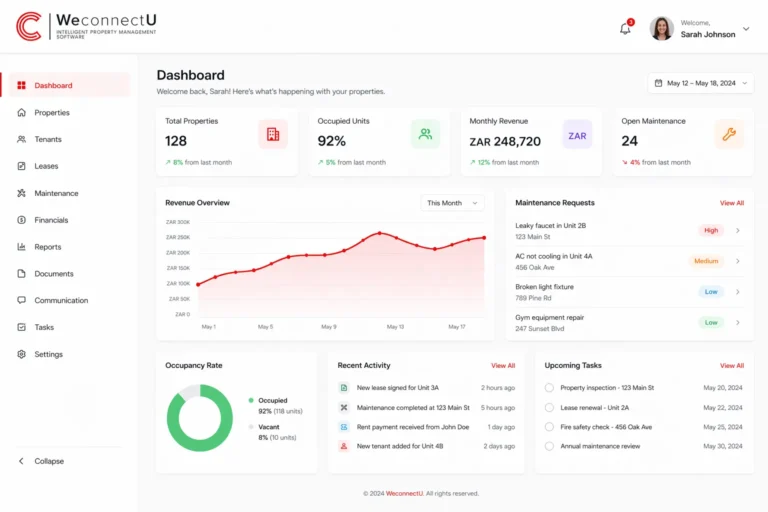 WeConnectU is an intelligent end-to-end property management software. The online portal provides access to owner statements, bank accounts, age analysis, creditor payments, and management accounts.